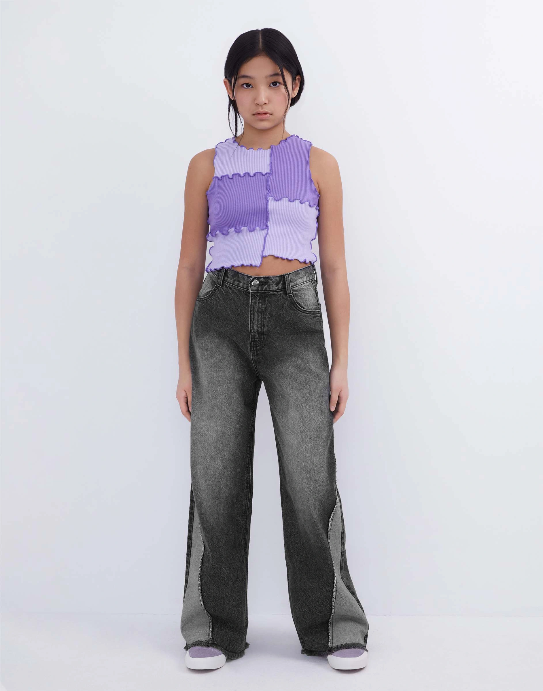 Серые джинсы Long leg с бахромой Gjn034992-1