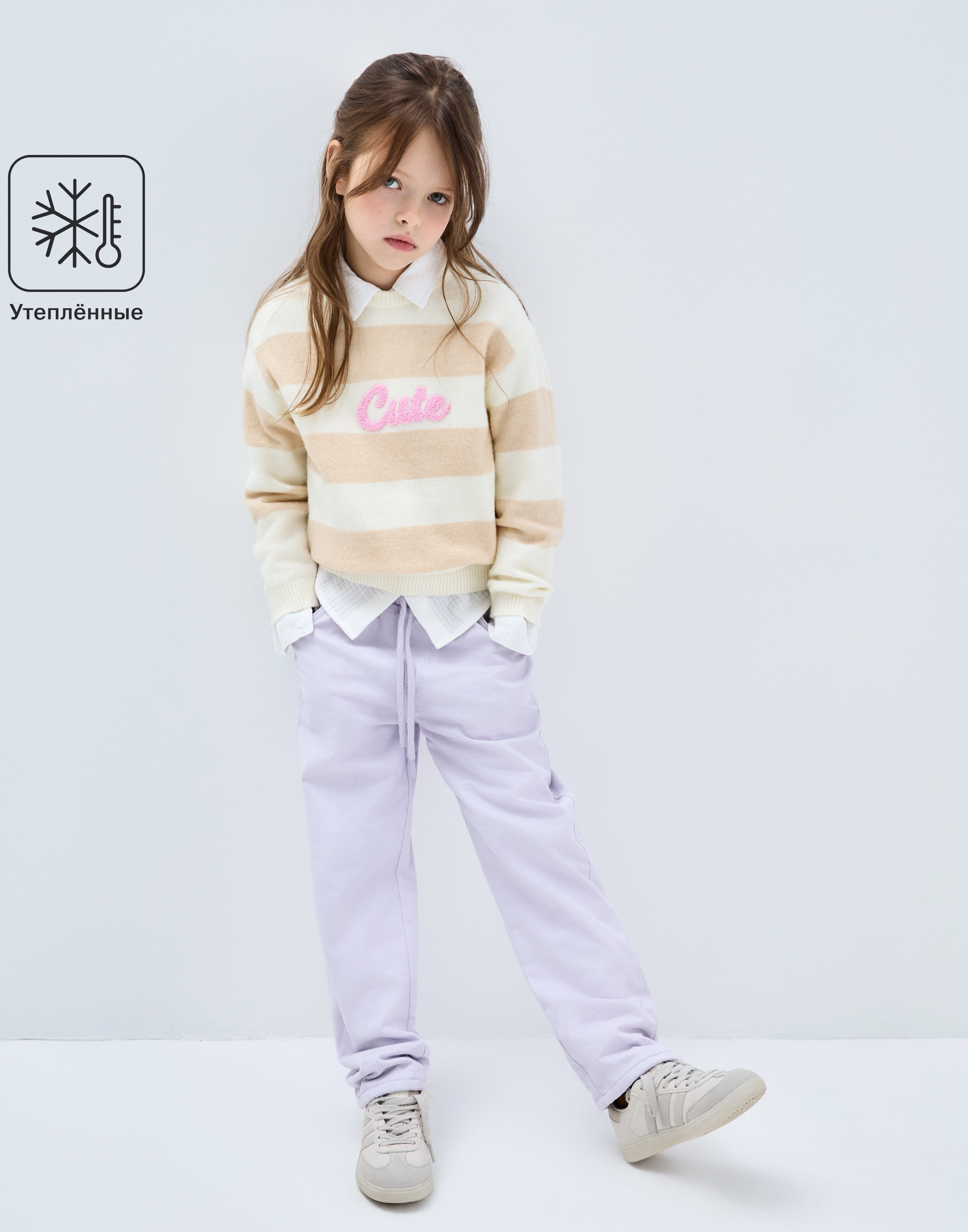 Сиреневые утеплённые брюки Straight с брелоком для девочки Gwb001502-1