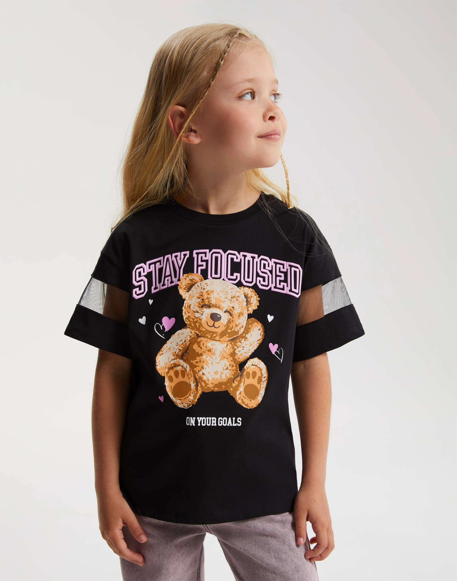 Чёрная футболка oversize с принтом для девочки Gkt026862-1