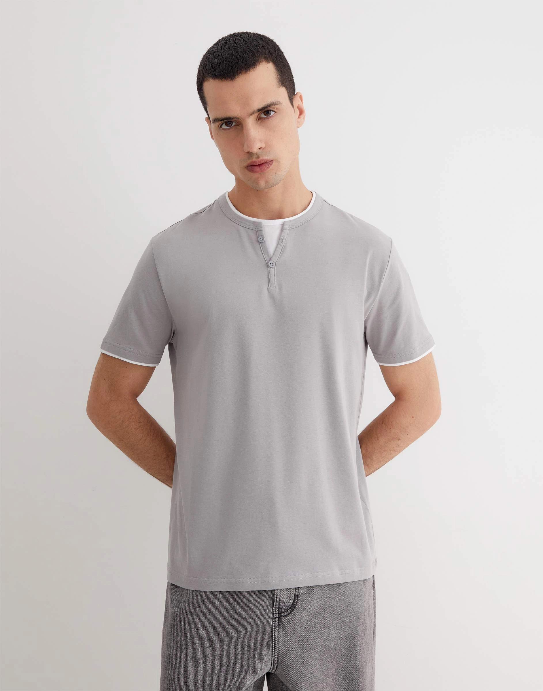 Серая футболка с воротником хенли и контрастными вставками Bkt016976-1