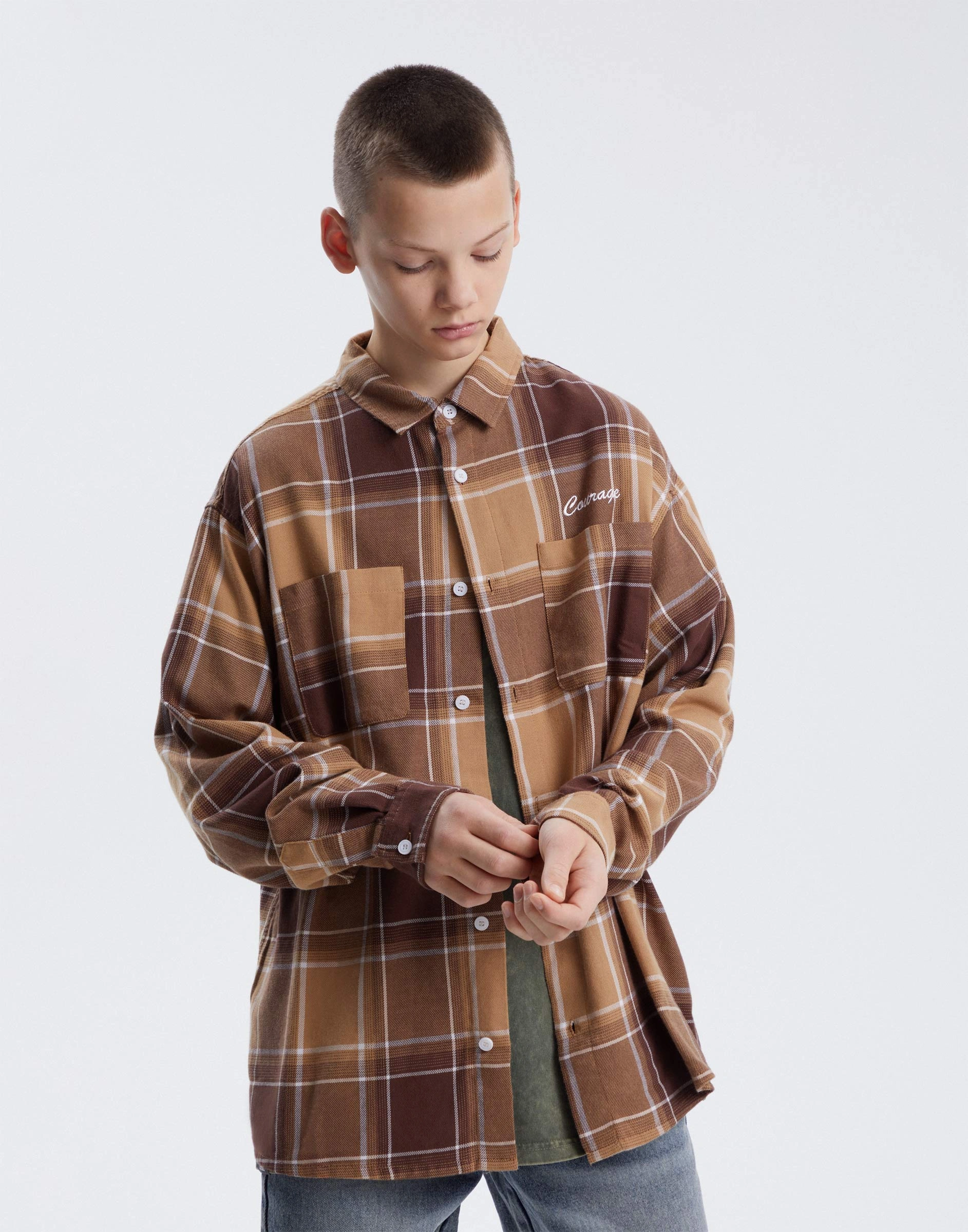 Бежевая клетчатая рубашка oversize из фланели Bwt001693-2