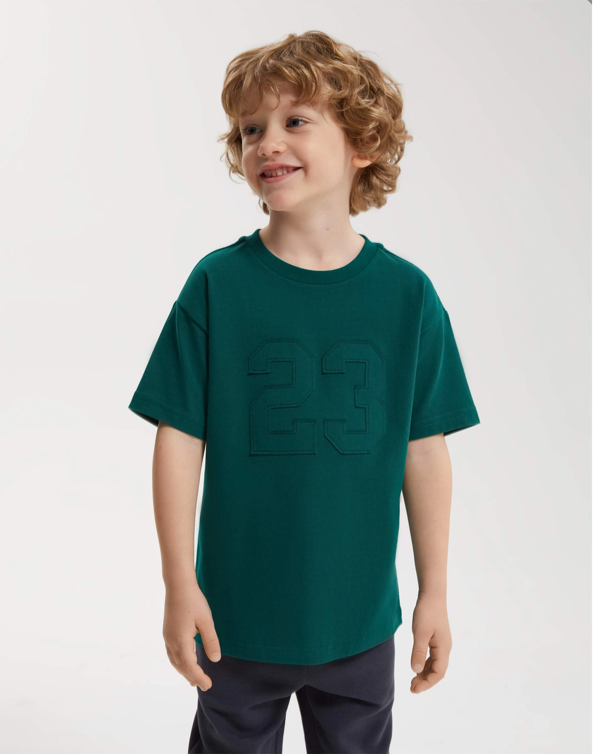 Тёмно-зелёная футболка с аппликацией для мальчика Bkt017233-2