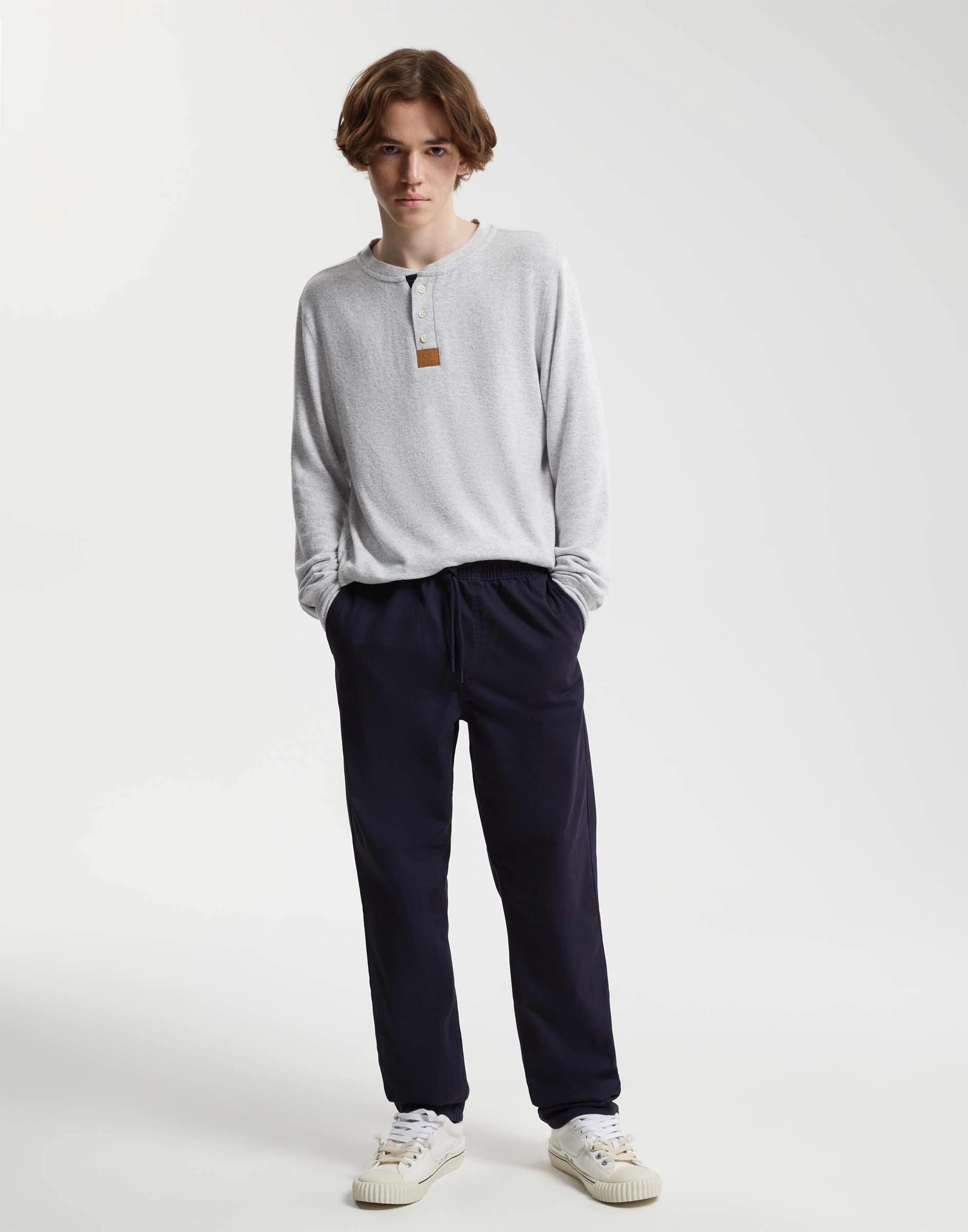 Тёмно-синие школьные брюки Slim с эластичным поясом Bsu000414-1
