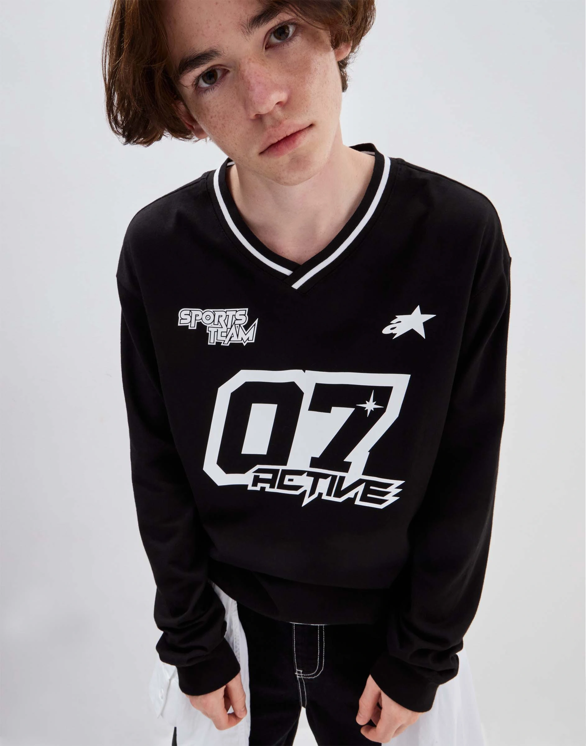 Чёрный лонгслив oversize с принтом Bkt017279-1