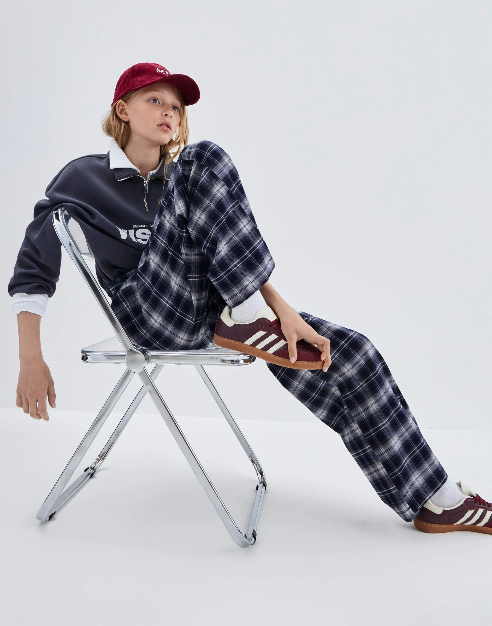 Клетчатые брюки Wide leg на резинке Gsu001341-1