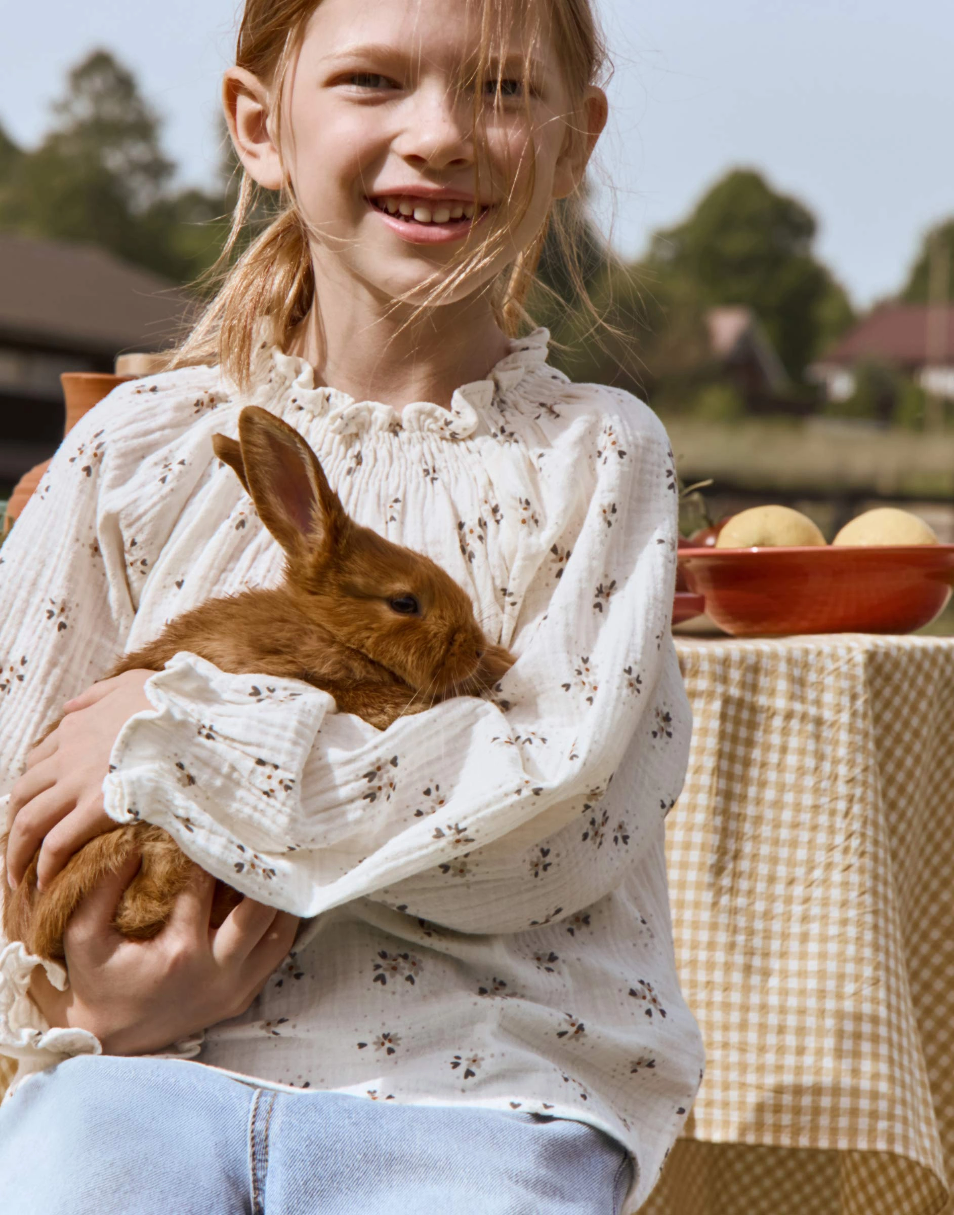Молочная блузка oversize из муслина с цветочным принтом для девочки Gwt004710-1