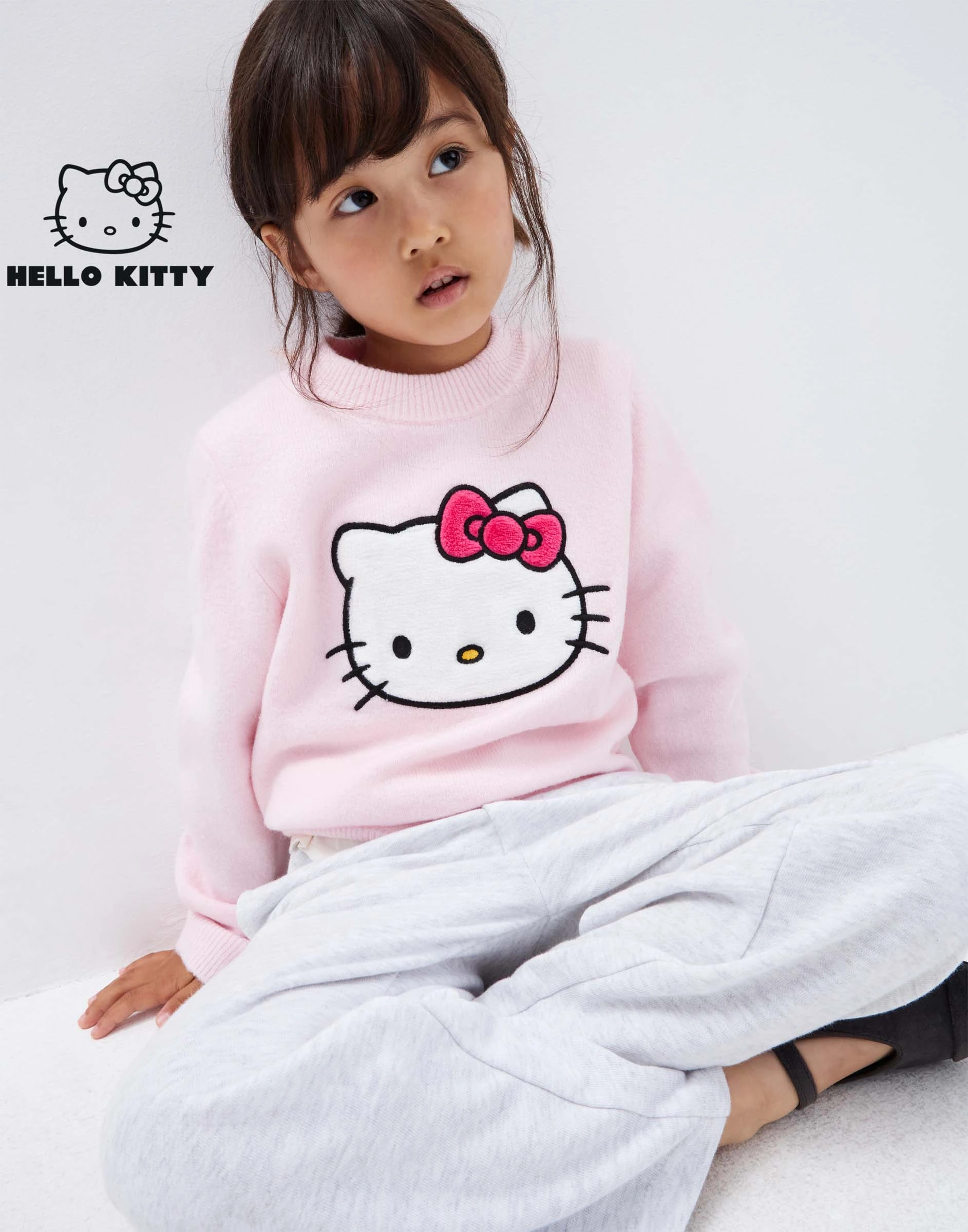 Розовый вязаный джемпер oversize с вышивкой Hello Kitty для девочки Gsw008271-1