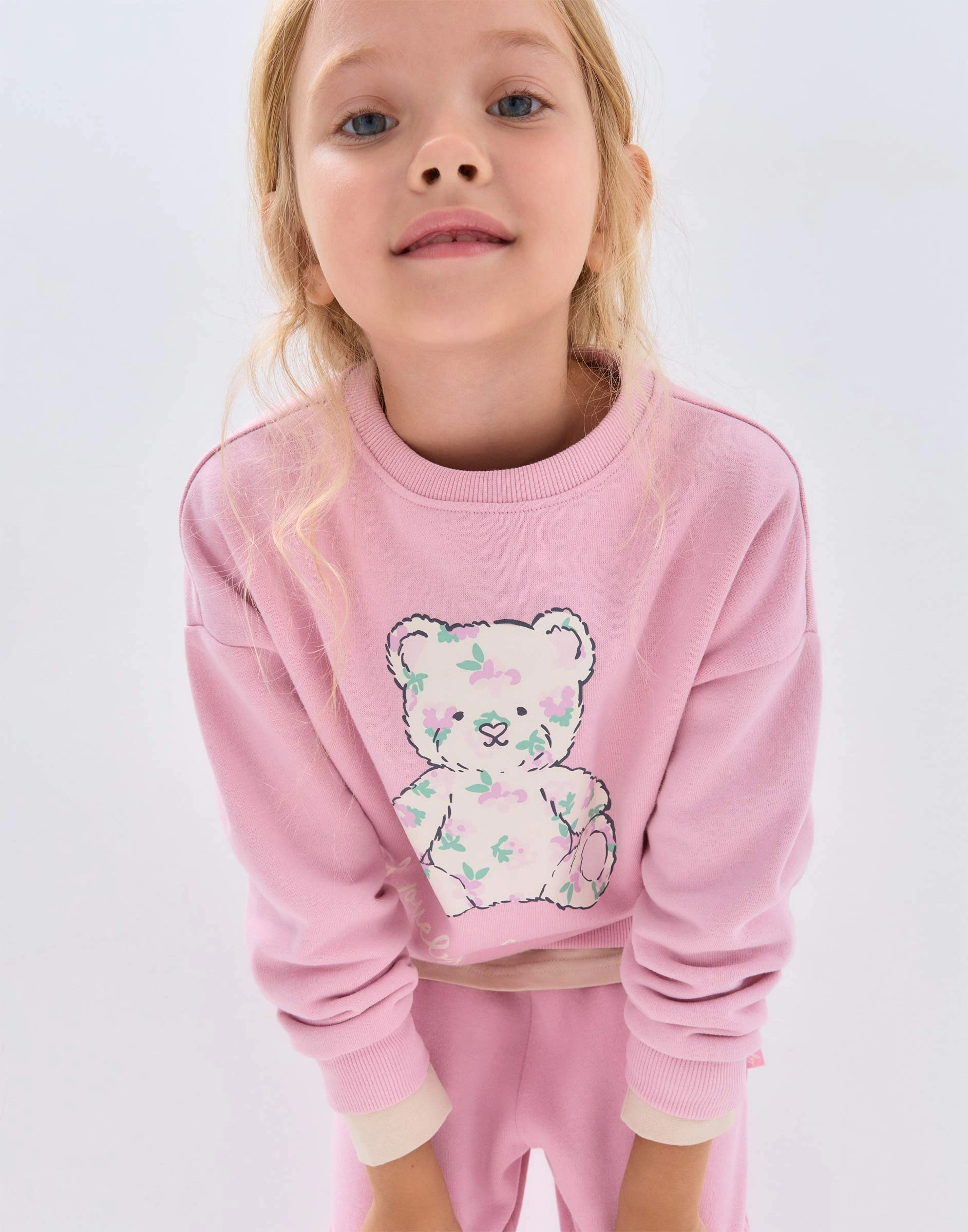 Розовый свитшот oversize с принтом для девочки Gac024989-1