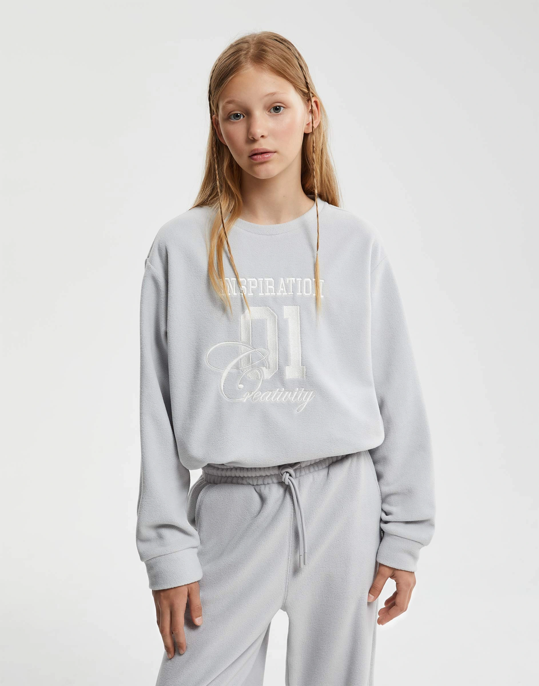 Светло-серый свитшот oversize с вышивкой Gac025154-2