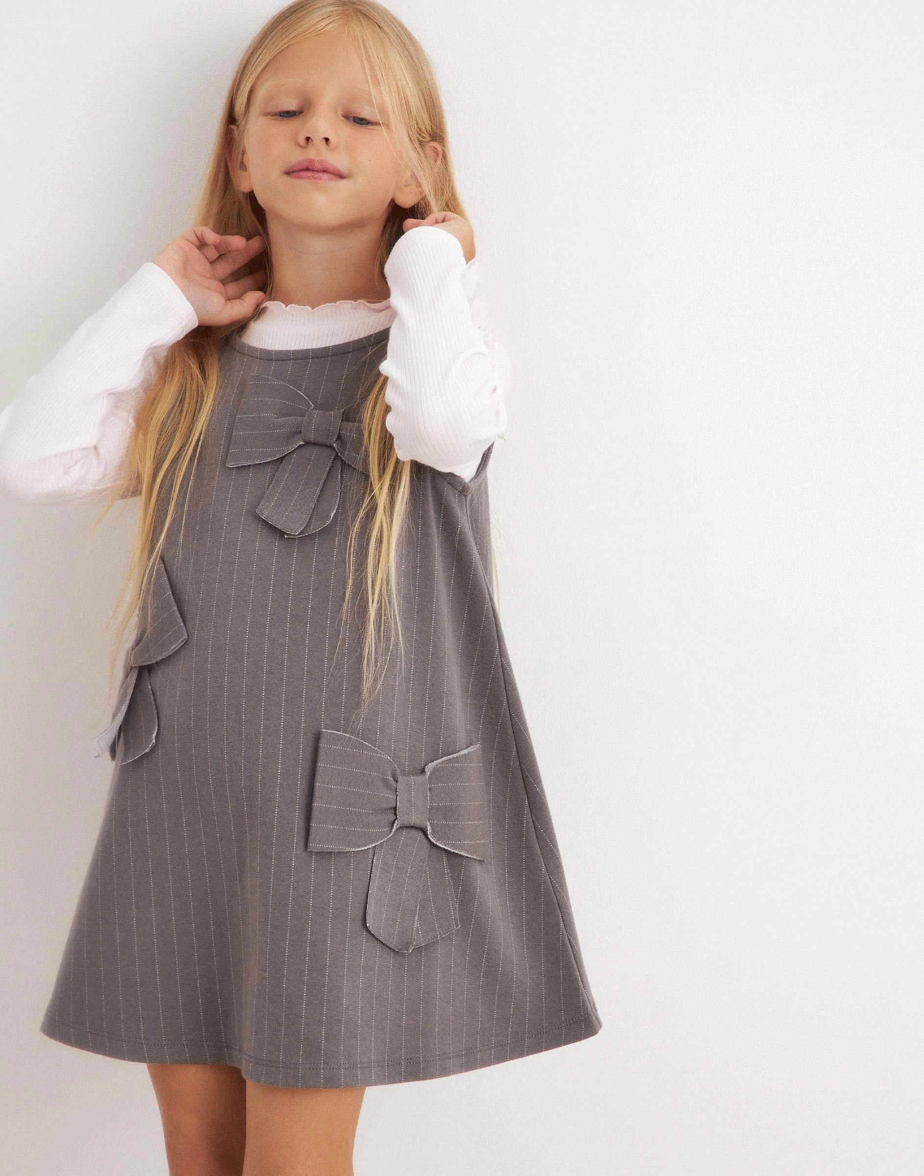 Серое платье-трапеция с бантиками для девочки Gdr030340-1