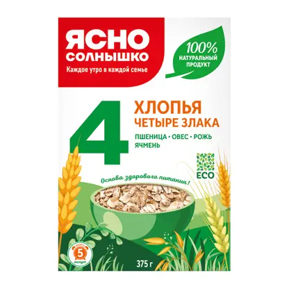 Хлопья Ясно солнышко 4 злака 375г
