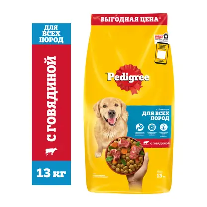Сухой корм для собак Pedigree всех пород с говядиной 13кг