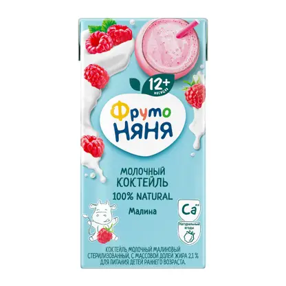 Молочный коктейль малиновый Фрутоняня 2.1% 200мл