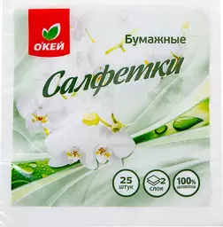 Салфетки Окей 33х33 2сл белые 25л