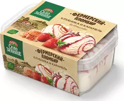 Бзмж Мороженое пломбир Село Зеленое ваниль-клубника и карамельный сироп-миндаль 450г
