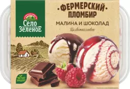 Бзмж Мороженое пломбир Село Зеленое малина в шоколадном топпинге 450г