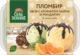 Бзмж Мороженое пломбир Село Зеленое хвоя с ароматом лайма и мандарина, кедровые орехи 450г