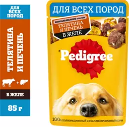 Влажный корм Pedigree для собак всех пород, с телятиной и печенью в желе