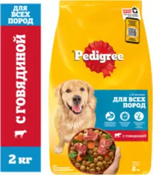 Корм сухой полнорационный Pedigree для взрослых собак всех пород с говядиной. 2кг