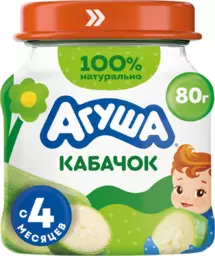 Пюре овощное Агуша кабачок с 4 мес 80г ст/б