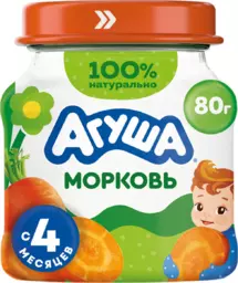 Пюре овощное Агуша морковь с 4 мес 80г ст/б