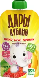 Пюре фруктовое Дары Кубани яблоко/банан/клубника с 6 мес 90г