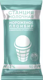 Пломбир Станция Молочная в вафельном стаканчике 12% Бзмж 90г