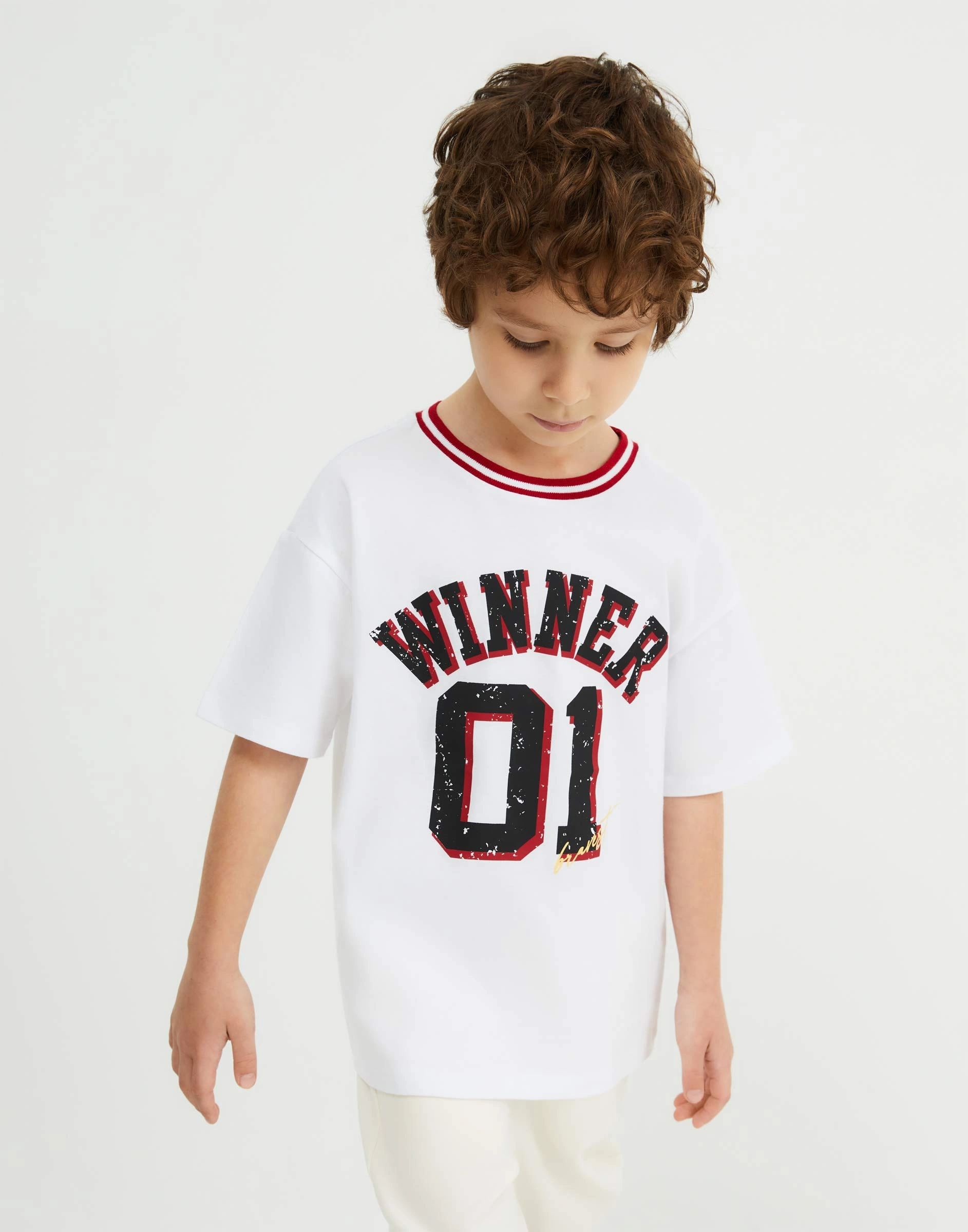 Белая футболка oversize с принтом для мальчика Bkt016275-1