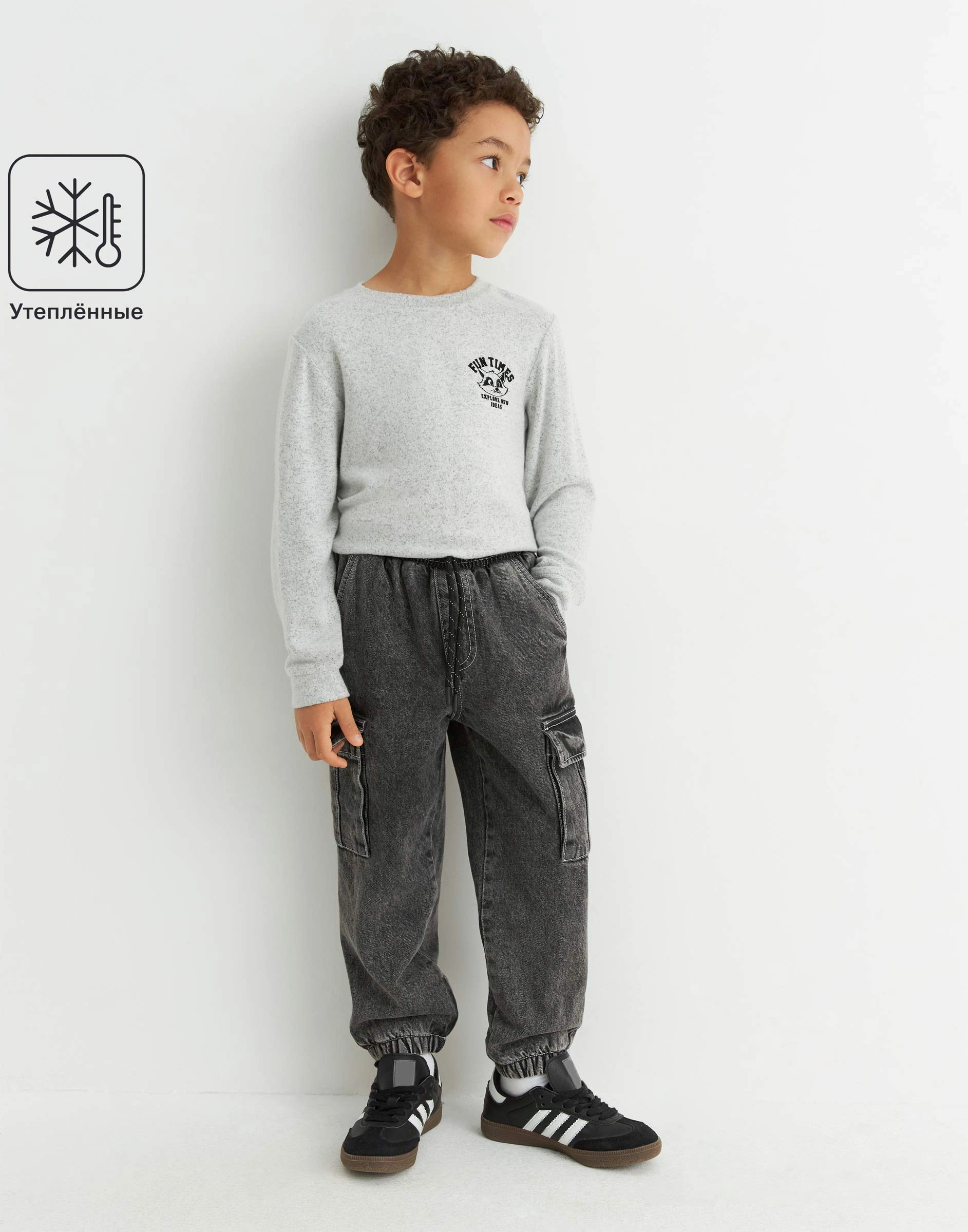 Серые утеплённые джинсы Jogger с карго-карманами для мальчика Bwb002024-1