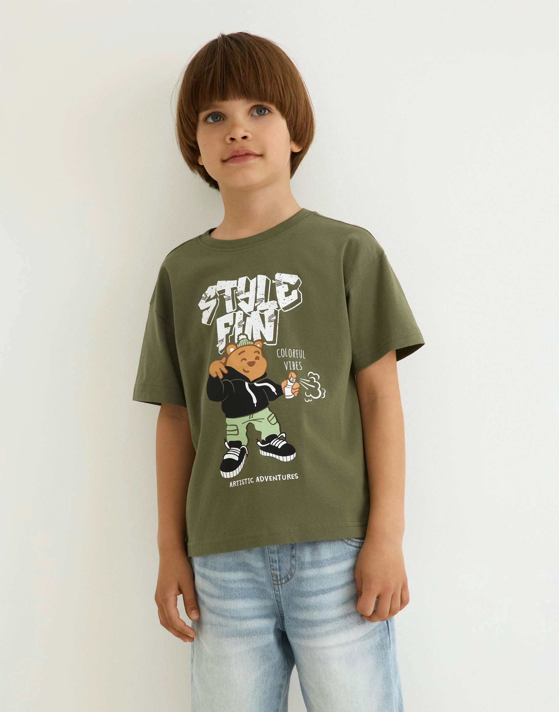 Хаки футболка oversize с принтом медвежонка для мальчика Bkt017124-1