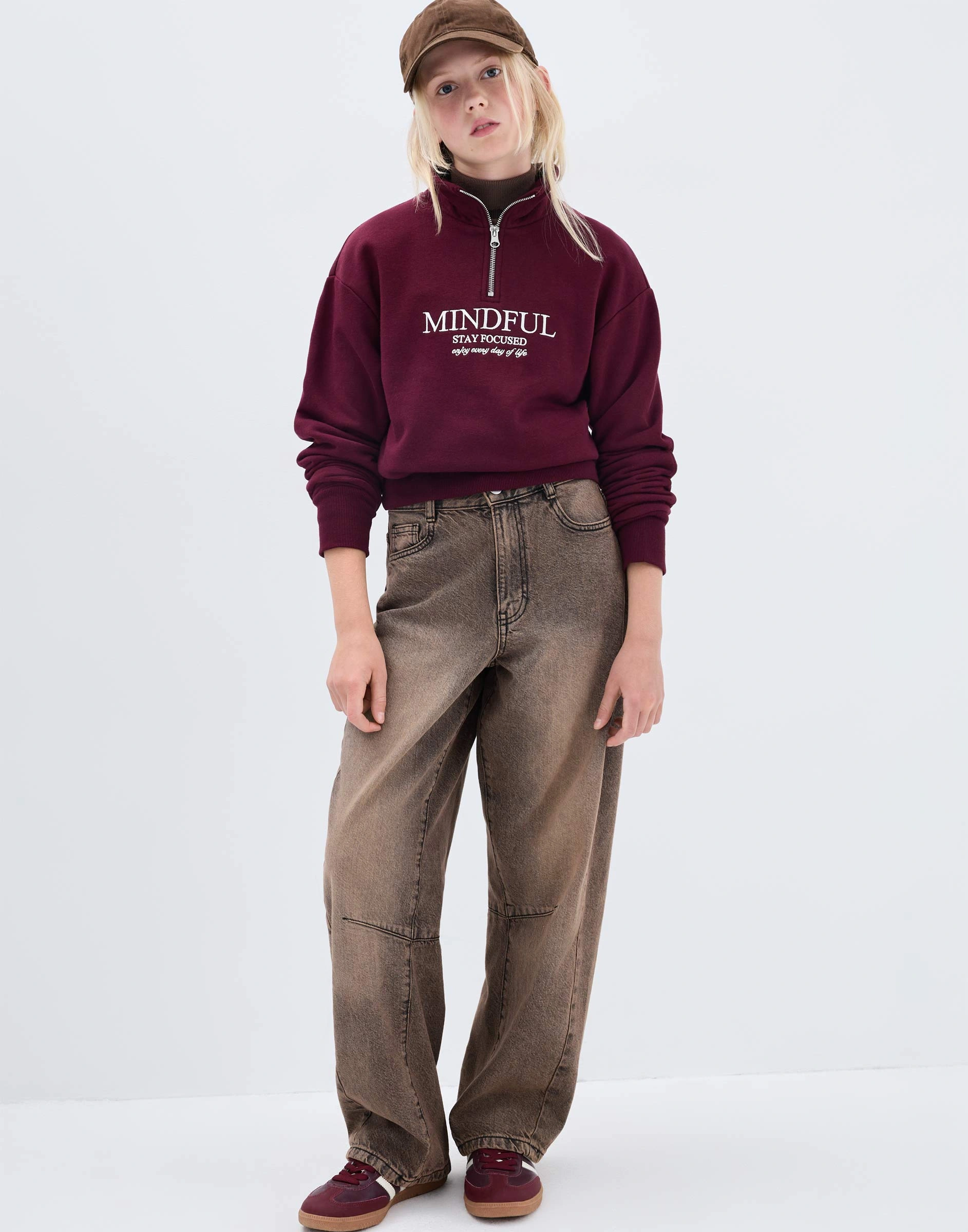 Коричневые джинсы Barrel с потёртостями Gjn036472-1