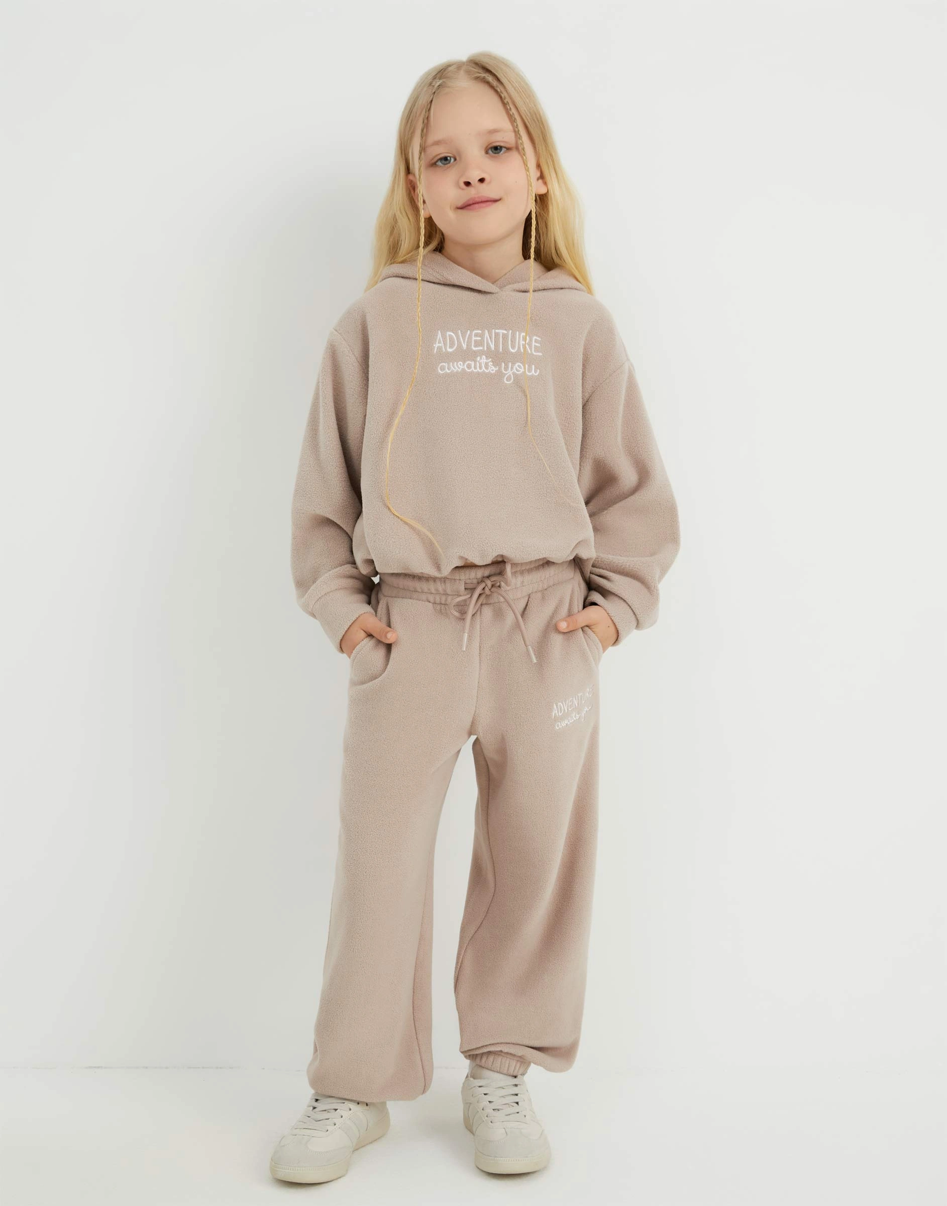 Коричневые спортивные брюки Baggy с вышивкой для девочки Gac024937-2