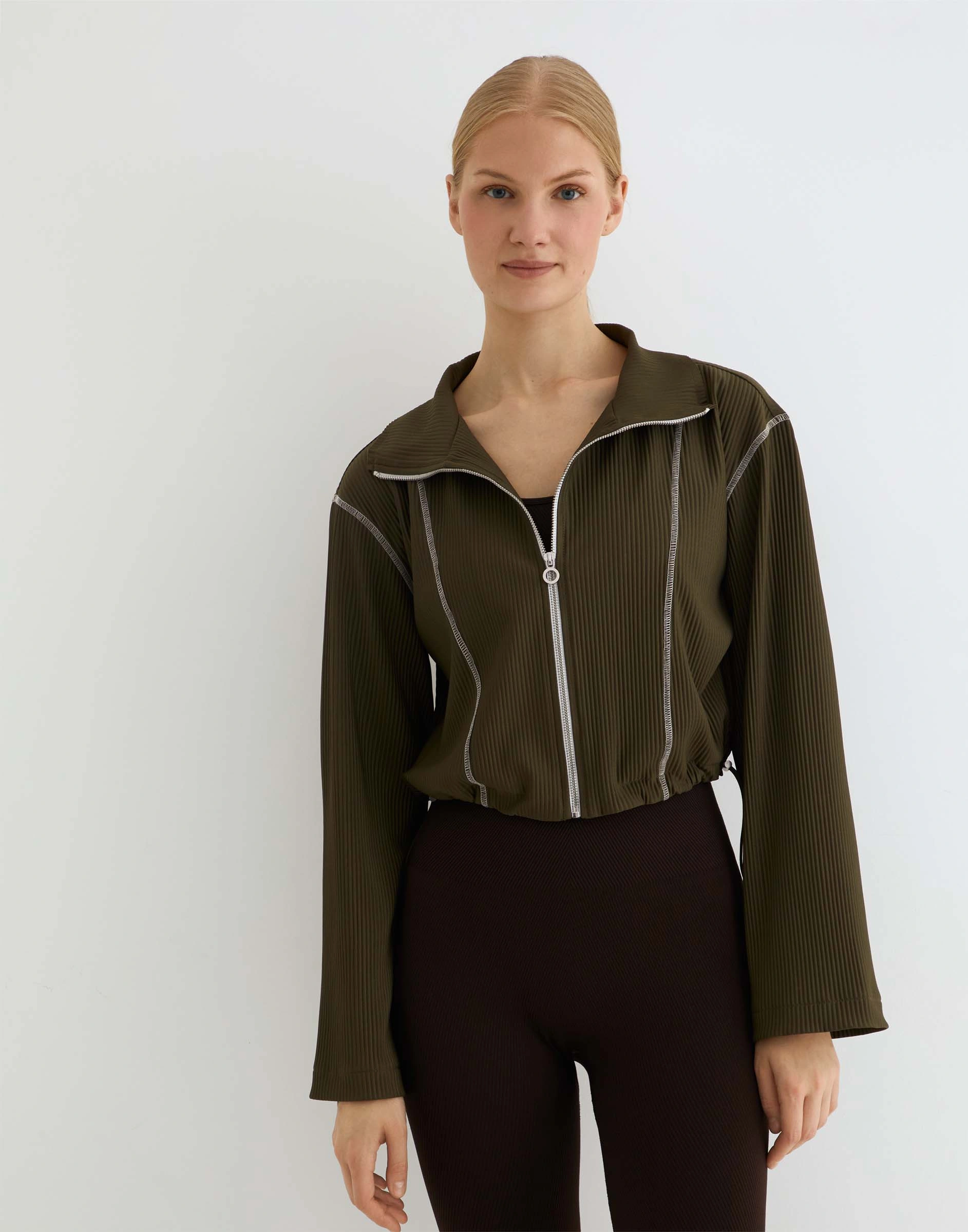 Хаки укороченный свитшот-трансформер на молнии Gac024485-1