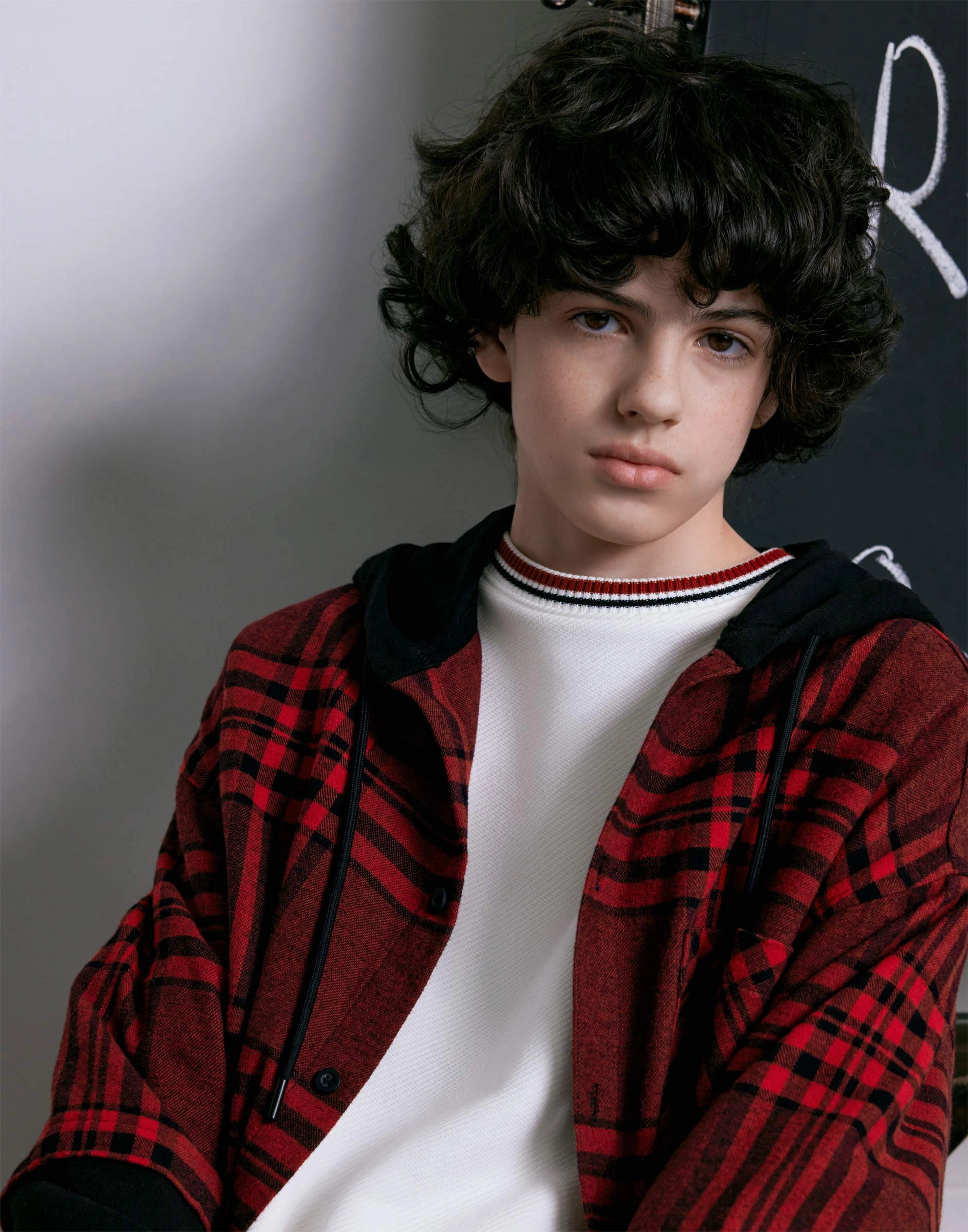 Красная рубашка в клетку из фланели с капюшоном Bwt002030-2