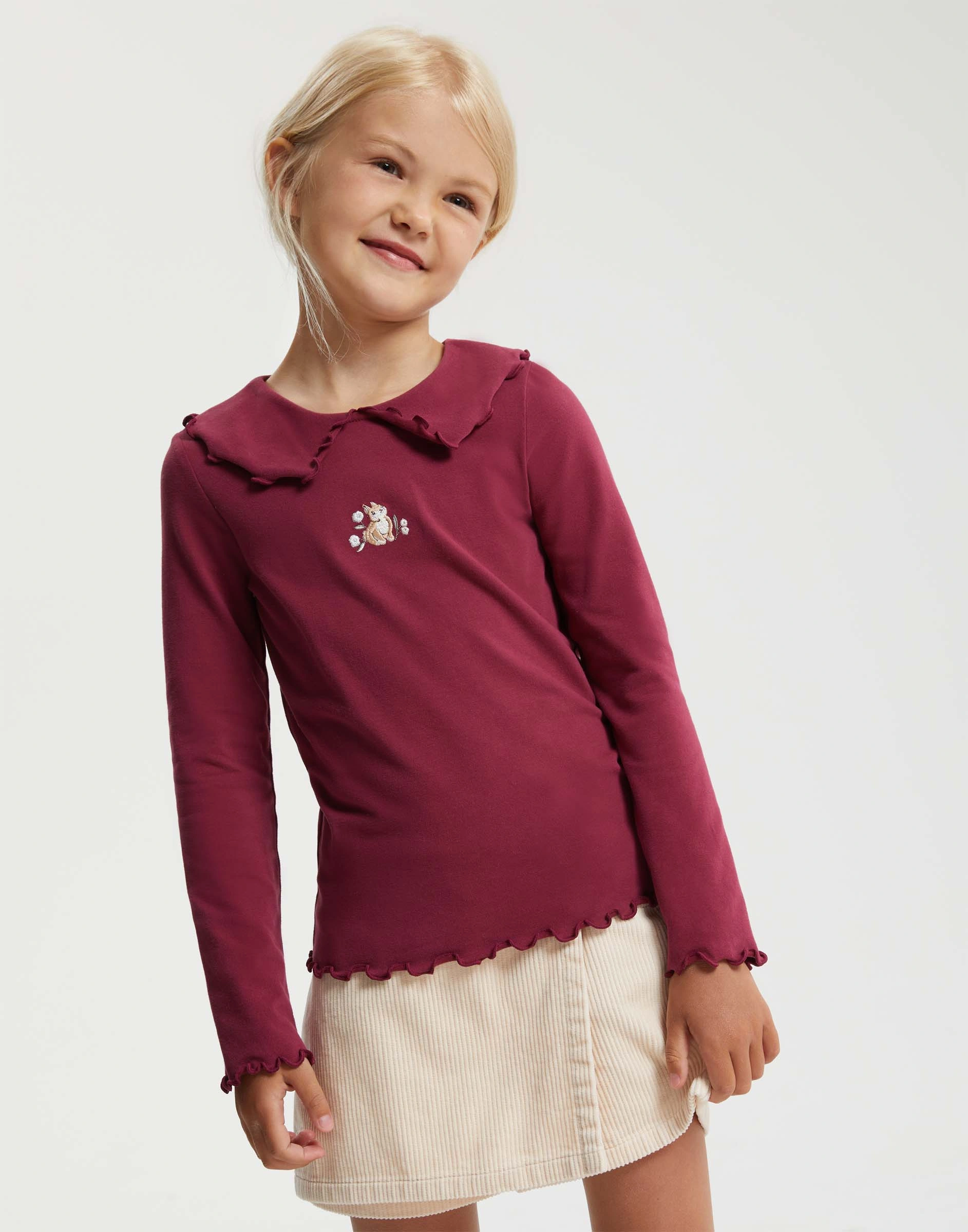 Бордовый лонгслив с воротником и вышивкой для девочки Gkt027400-2