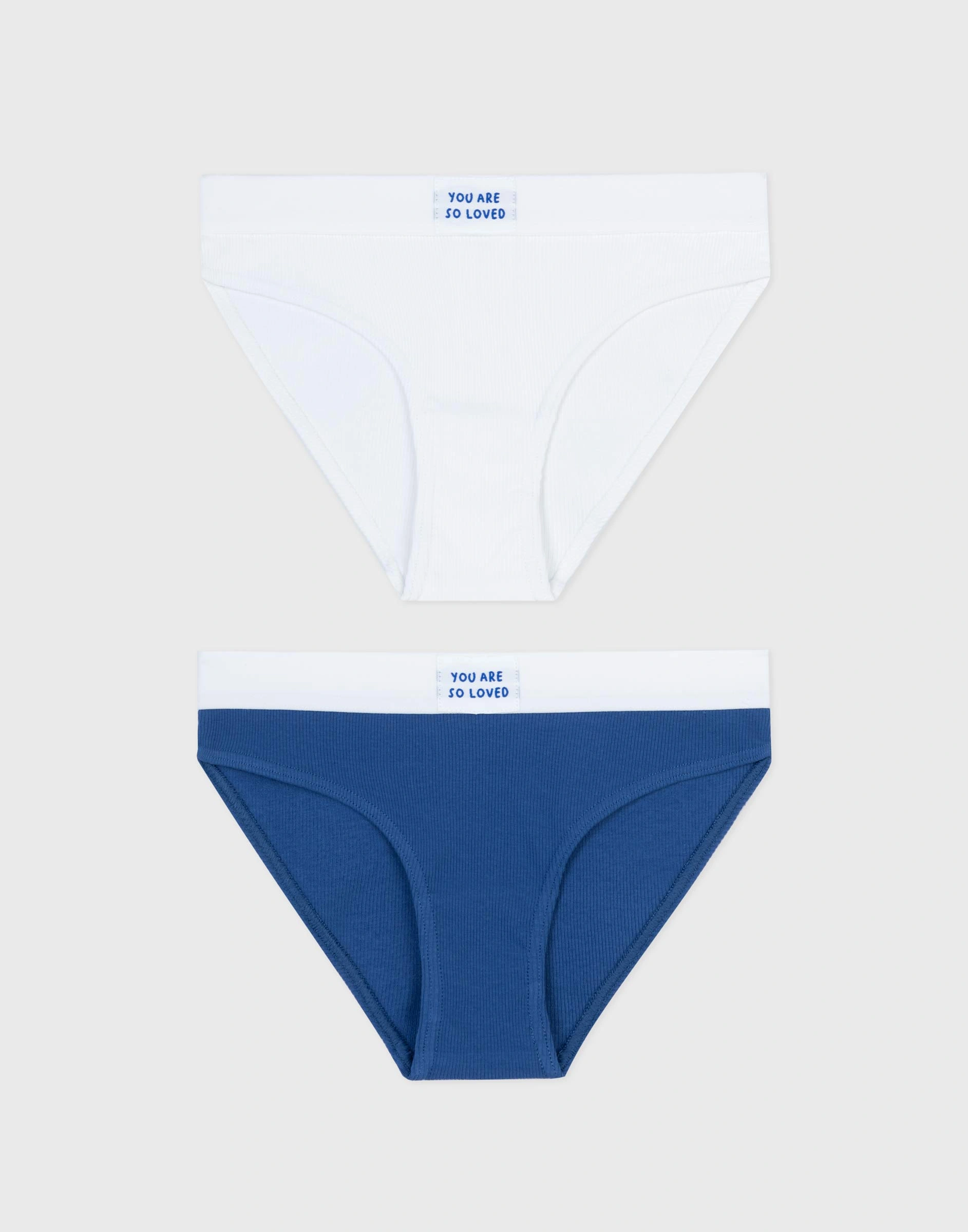 Трусы-бикини в рубчик с жаккардовой резинкой и патчем 2 шт. Guw009960-1