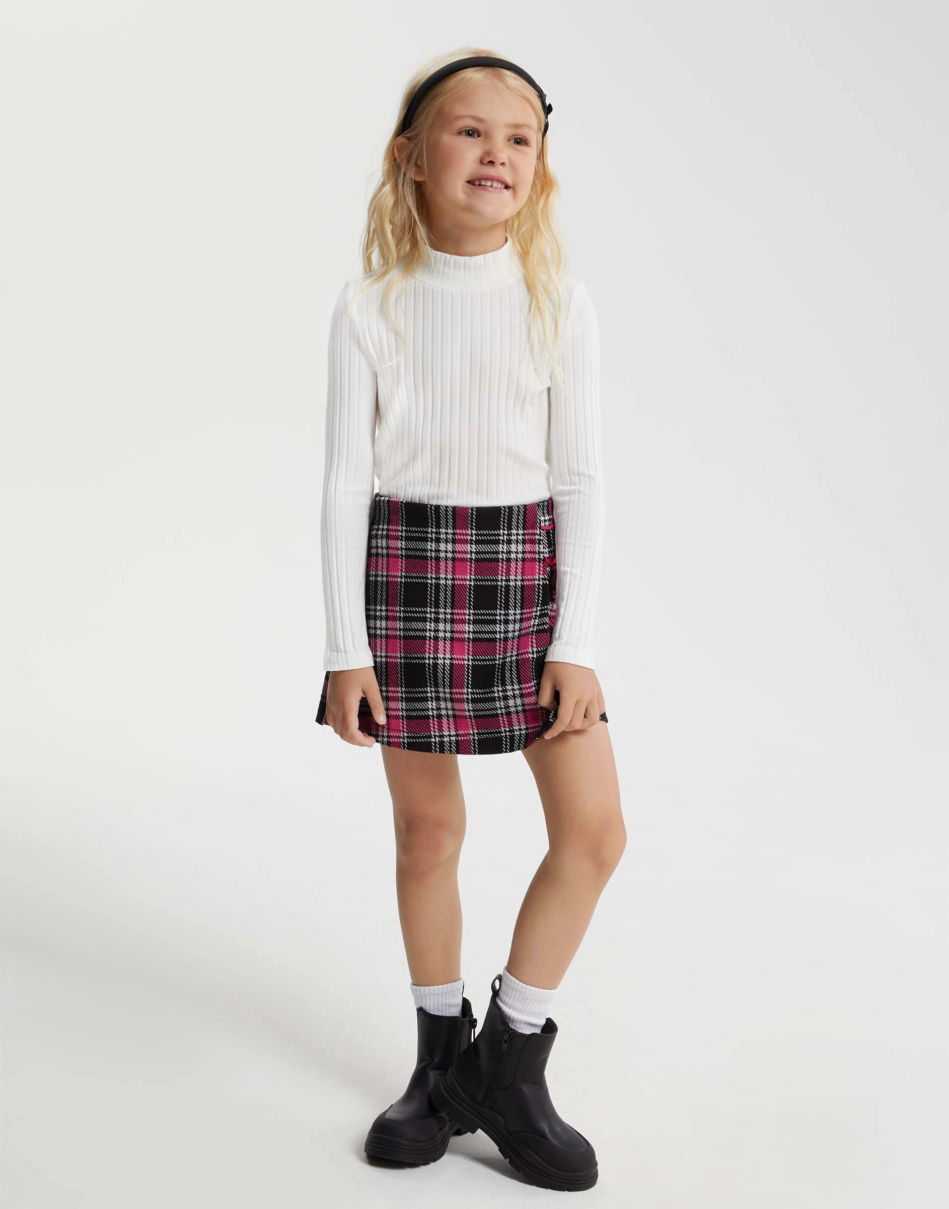 Чёрная юбка-шорты в клетку для девочки Gsk019896-1