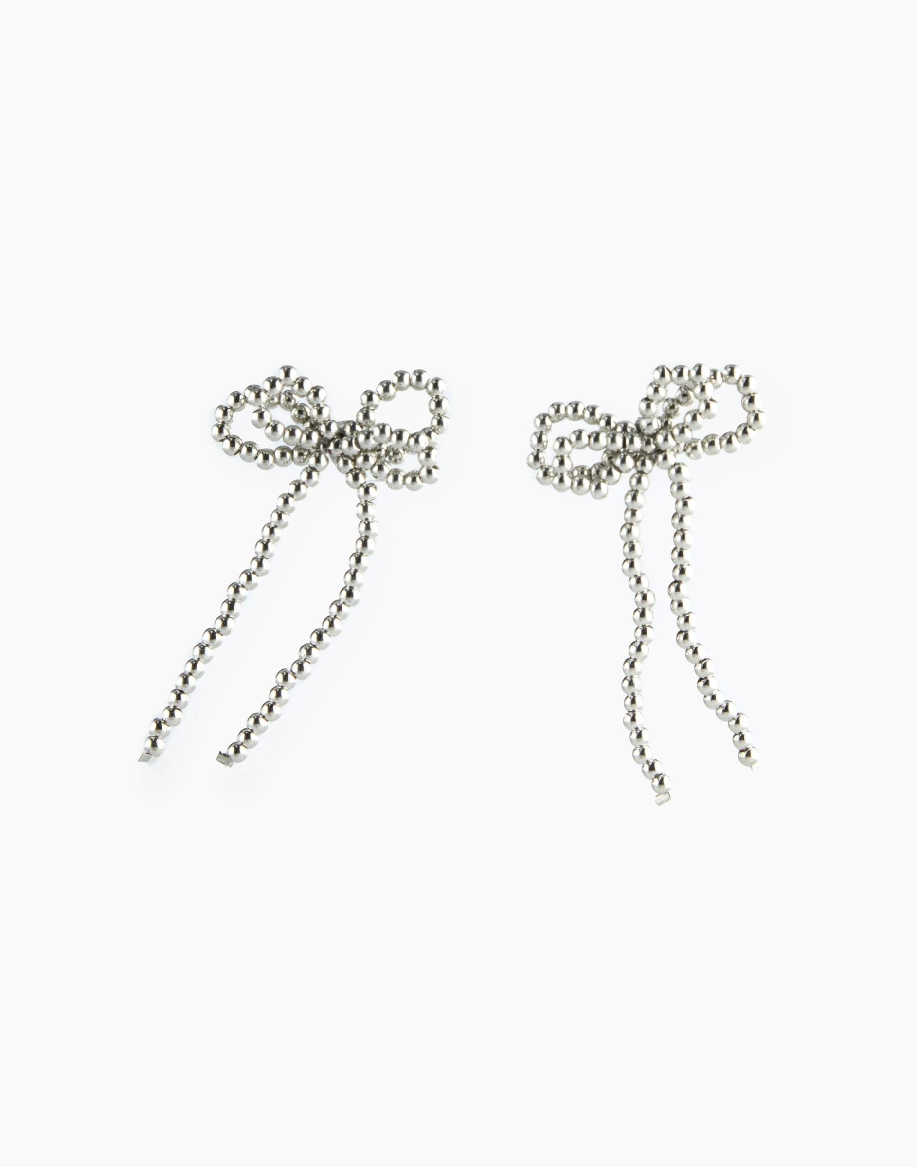 Серебристые серьги-бантики из бусин Gjw013236-1