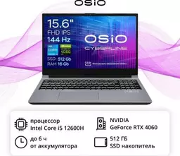 Ноутбук игровой Osio Cyberline С150i-003 i5-12600h/rtx4060 8Gb/16/512gb Titan