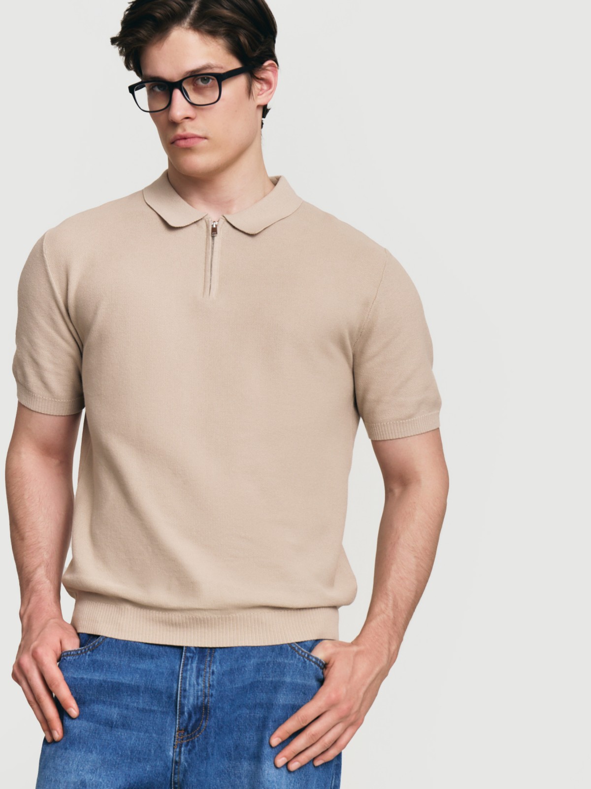 Трикотажный джемпер поло из хлопка с коротким рукавом