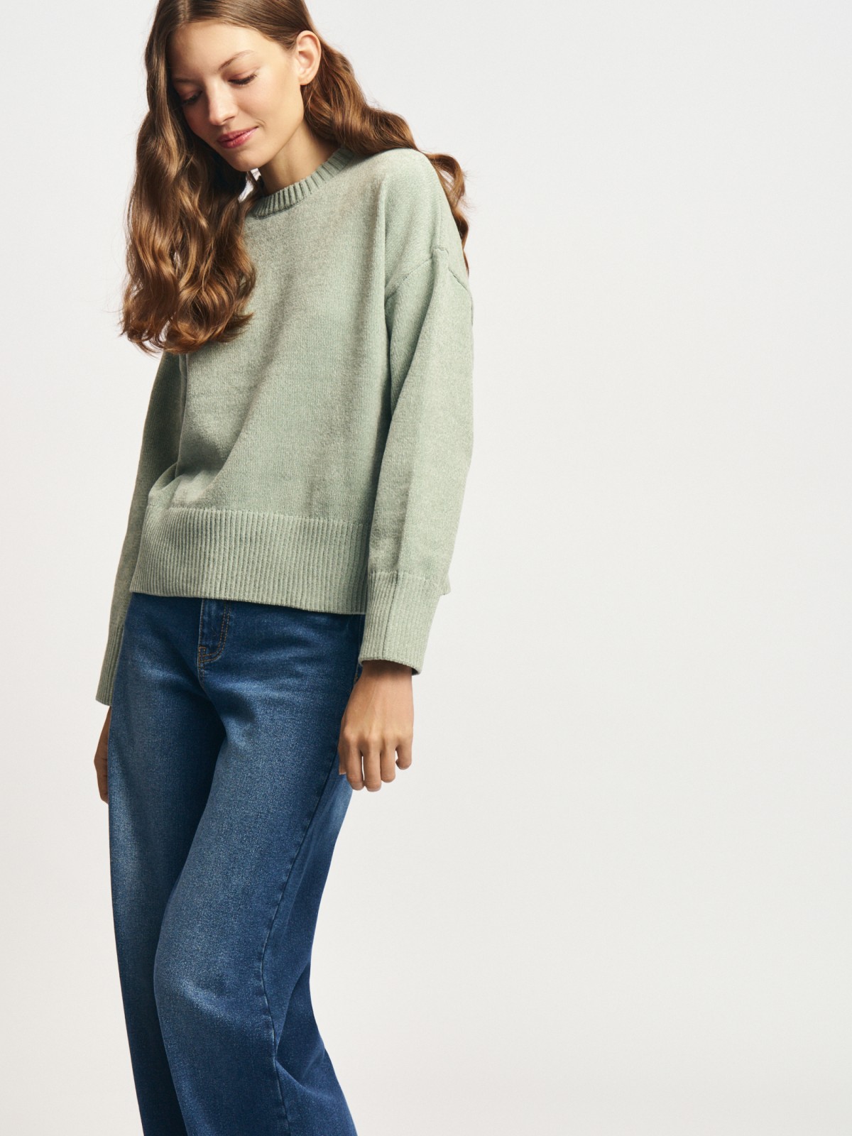 Вязаный бархатный джемпер с длинным рукавом