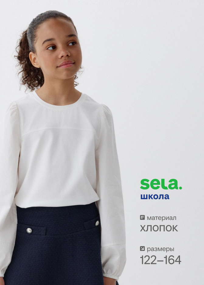 Комбинированная белая блузка для девочек Sl5808050511_1