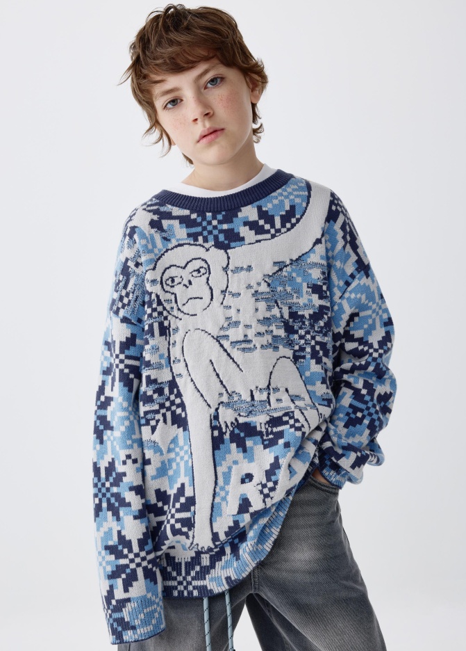 Вязаный джемпер оверсайз с принтом для мальчиков Sl5804070601_99