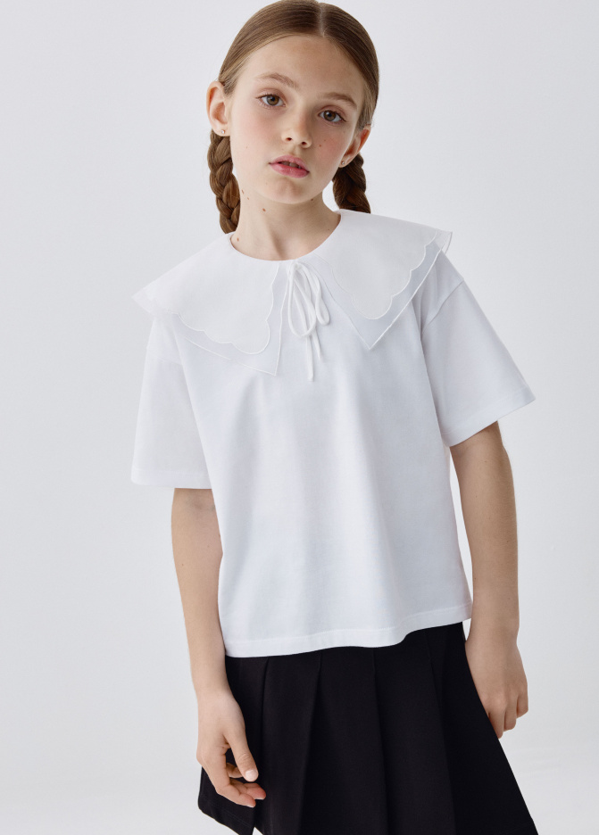 Трикотажная блузка с воротником для девочек Sl5808050504_1