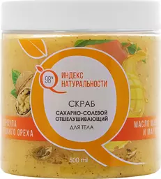 Скраб для тела 'Индекс Натуральности' сахарно-солевой с маслом манго и марулы (отшелушивающий) 500 мл