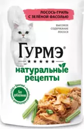 Корм влажный для кошек Гурмэ Натуральные рецепты с лососем и фасолью, 75 г