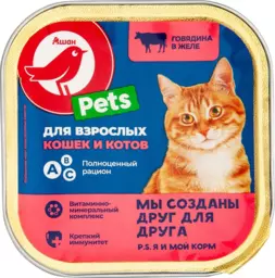 Корм для кошек Ашан Красная птица говядина в желе, 100 г