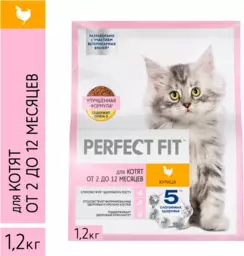 Сухой корм для котят Perfect Fit полнорационный от 2 до 12 месяцев с курицей, 1.2 кг