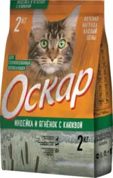 Сухой корм для стерилизованных котов и кошек Оскар индейка и ягненок с клюквой, 2 кг