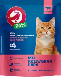 Сухой корм для стерилизованных кошек Ашан Красная птица с говядиной, 600 г